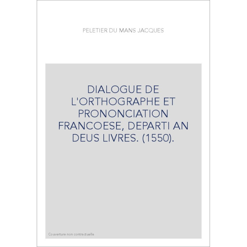 DIALOGUE DE L'ORTHOGRAPHE ET PRONONCIATION FRANCOESE, DEPARTI AN DEUS LIVRES. (1550).