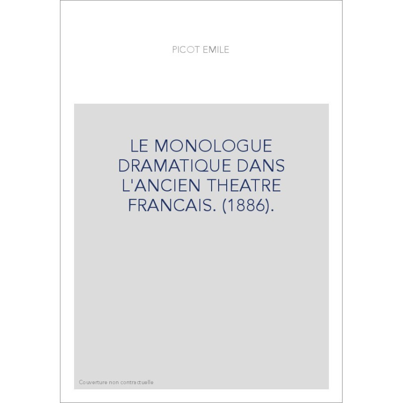 LE MONOLOGUE DRAMATIQUE DANS L'ANCIEN THEATRE FRANCAIS. (1886).