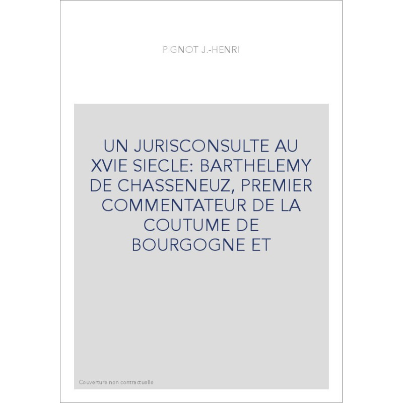 UN JURISCONSULTE AU XVIE SIECLE: BARTHELEMY DE CHASSENEUZ, PREMIER COMMENTATEUR DE LA COUTUME DE BOURGOGNE ET