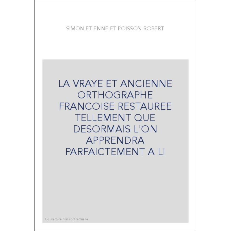 LA VRAYE ET ANCIENNE ORTHOGRAPHE FRANCOISE RESTAUREE TELLEMENT QUE DESORMAIS L'ON APPRENDRA PARFAICTEMENT A L