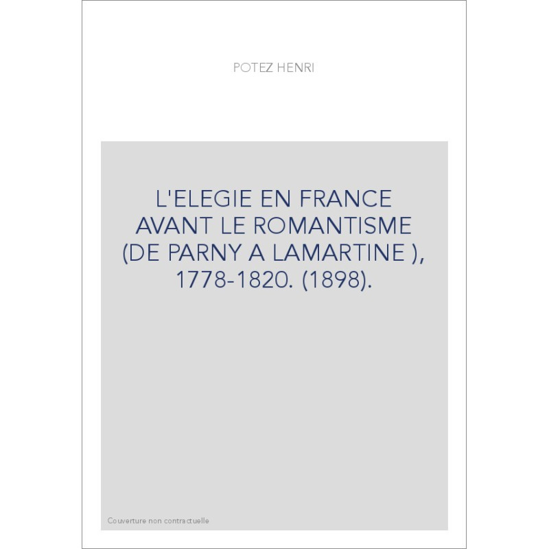 L'ELEGIE EN FRANCE AVANT LE ROMANTISME (DE PARNY A LAMARTINE ), 1778-1820. (1898).