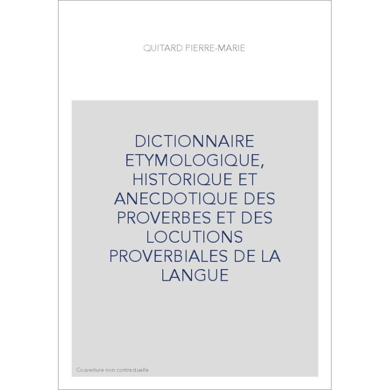 DICTIONNAIRE ETYMOLOGIQUE, HISTORIQUE ET ANECDOTIQUE DES PROVERBES ET DES LOCUTIONS PROVERBIALES DE LA LANGUE