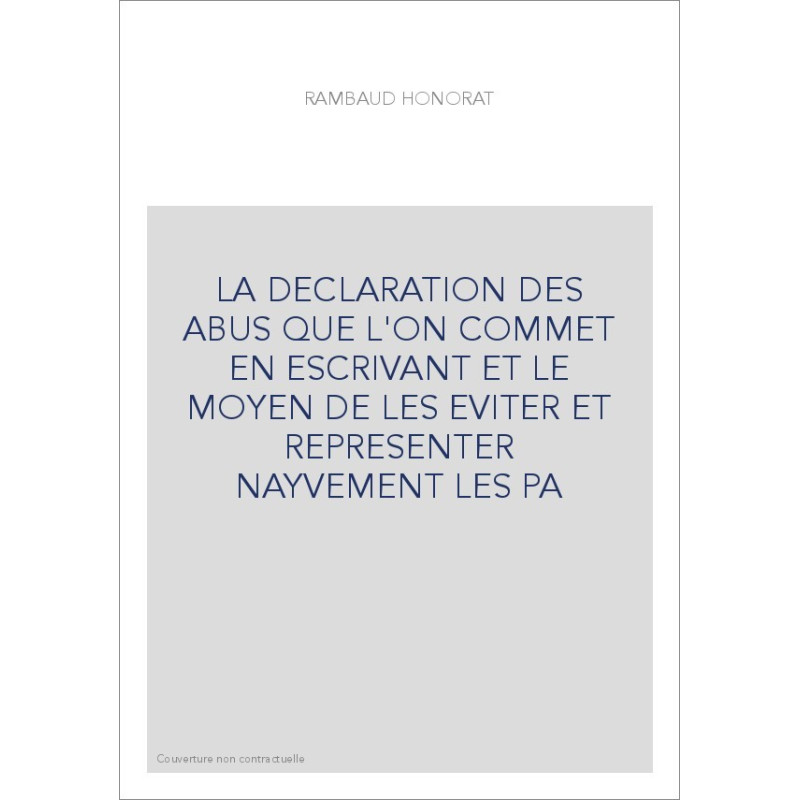 LA DECLARATION DES ABUS QUE L'ON COMMET EN ESCRIVANT ET LE MOYEN DE LES EVITER ET REPRESENTER NAYVEMENT LES P