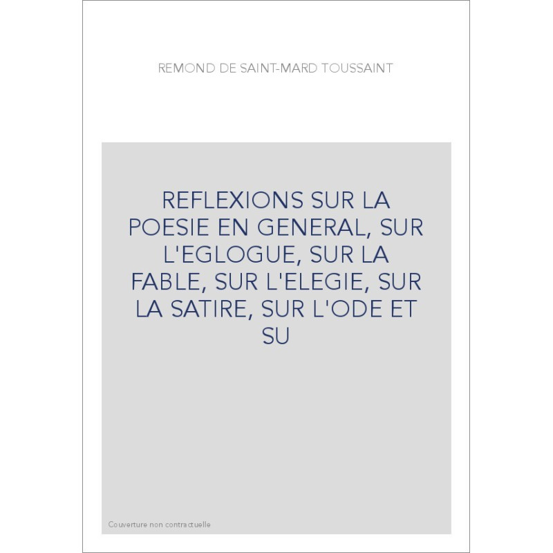 REFLEXIONS SUR LA POESIE EN GENERAL, SUR L'EGLOGUE, SUR LA FABLE, SUR L'ELEGIE, SUR LA SATIRE, SUR L'ODE ET
