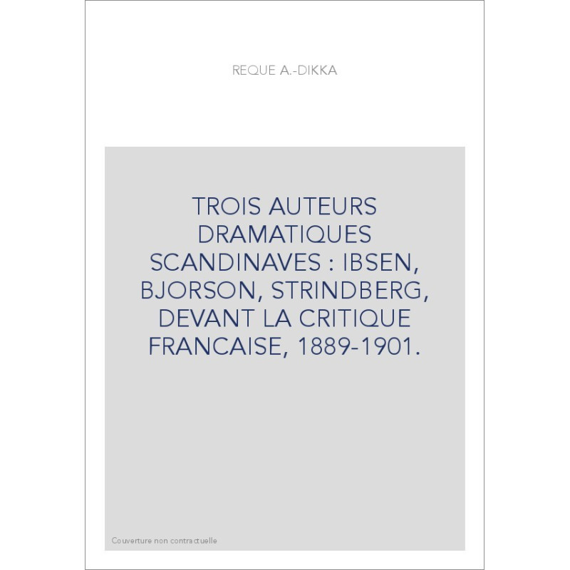 TROIS AUTEURS DRAMATIQUES SCANDINAVES : IBSEN, BJORSON, STRINDBERG, DEVANT LA CRITIQUE FRANCAISE, 1889-1901. View larger