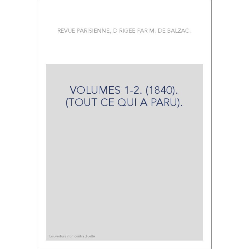 REVUE PARISIENNE, DIRIGEE PAR M. DE BALZAC.