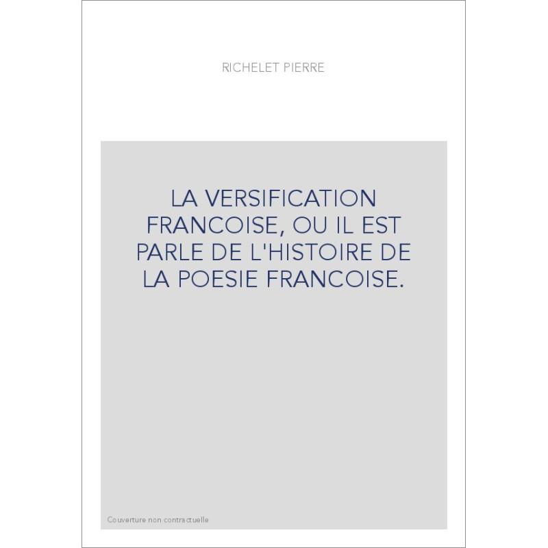 LA VERSIFICATION FRANCOISE, OU IL EST PARLE DE L'HISTOIRE DE LA POESIE FRANCOISE.