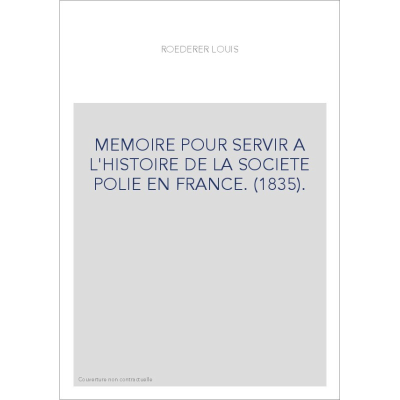 MEMOIRE POUR SERVIR A L'HISTOIRE DE LA SOCIETE POLIE EN FRANCE. (1835).