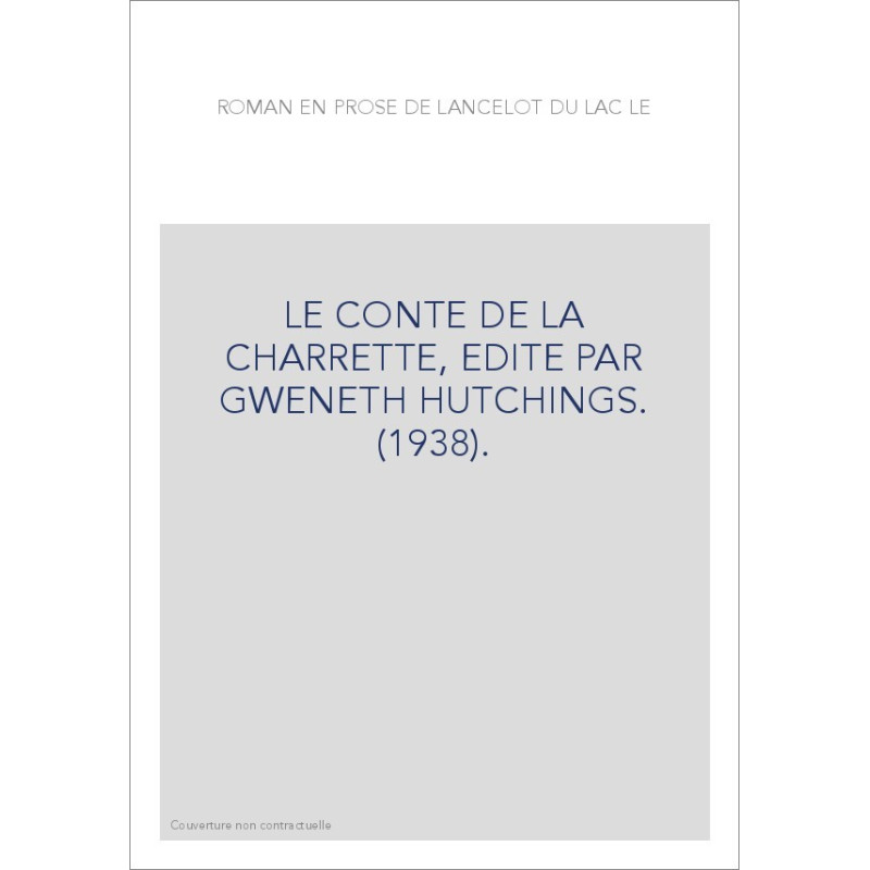 LE ROMAN EN PROSE DE LANCELOT DU LAC. LE CONTE DE LA CHARRETTE, EDITE PAR GWENETH HUTCHINGS. (1938).
