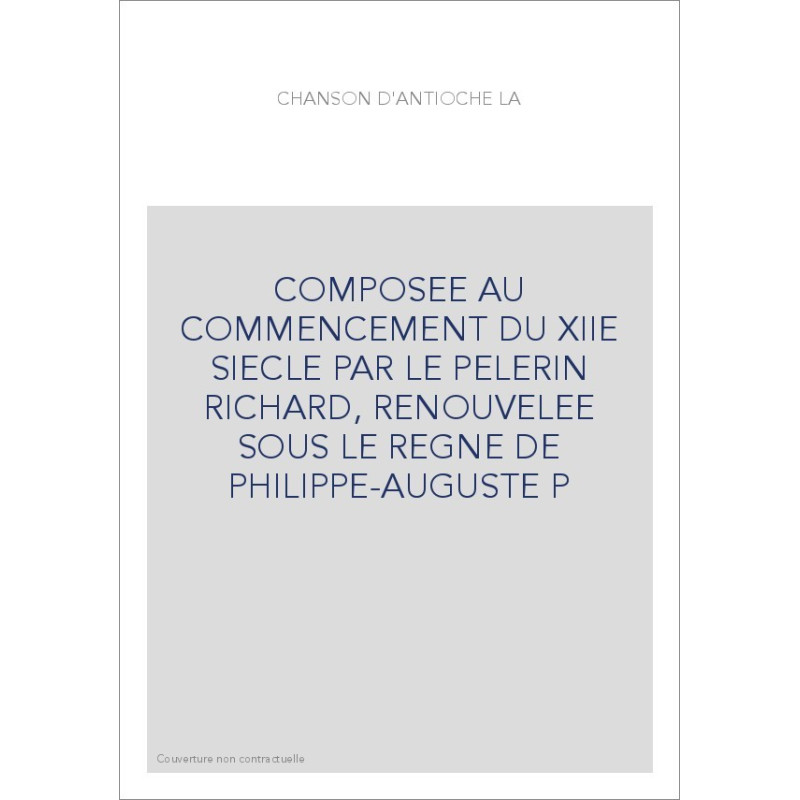 LA CHANSON D'ANTIOCHE, COMPOSEE AU COMMENCEMENT DU XIIE SIECLE PAR LE PELERIN RICHARD,