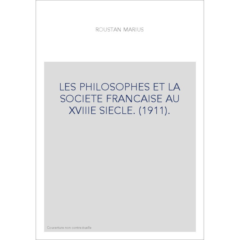 LES PHILOSOPHES ET LA SOCIETE FRANCAISE AU XVIIIE SIECLE. (1911).