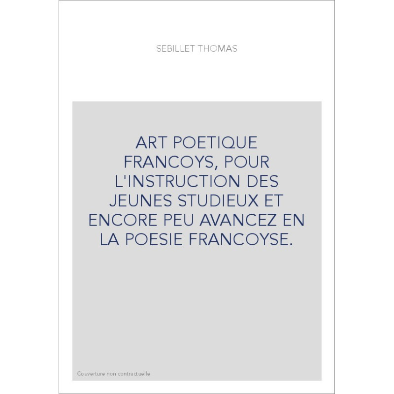 ART POETIQUE FRANCOYS, POUR L'INSTRUCTION DES JEUNES STUDIEUX ET ENCORE PEU AVANCEZ EN LA POESIE FRANCOYSE.