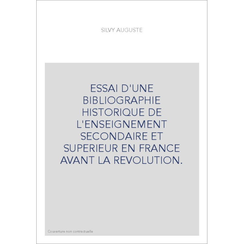 ESSAI D'UNE BIBLIOGRAPHIE HISTORIQUE DE L'ENSEIGNEMENT SECONDAIRE ET SUPERIEUR EN FRANCE AVANT LA REVOLUTION