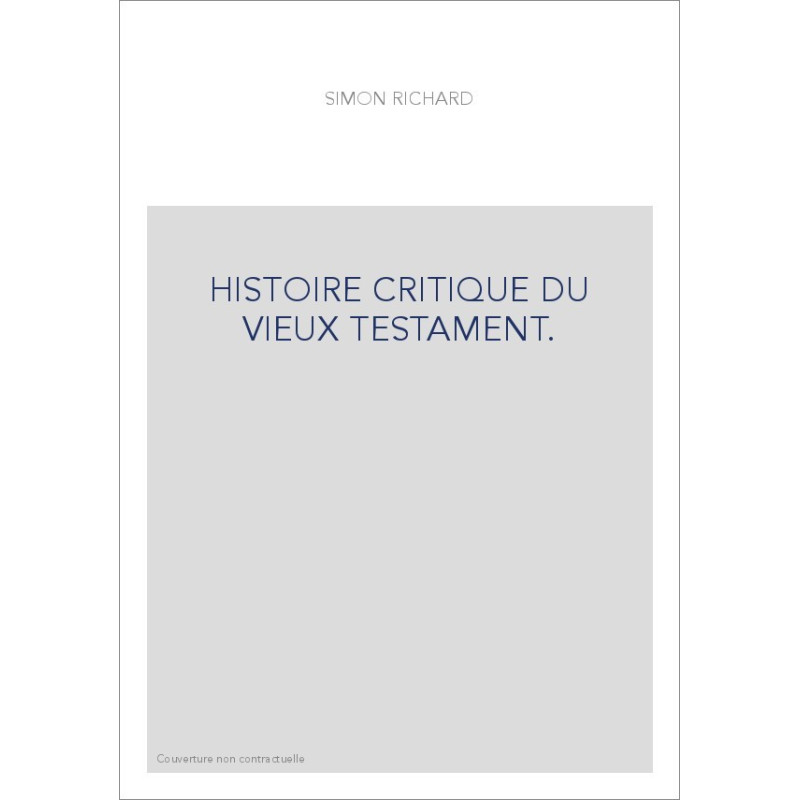 HISTOIRE CRITIQUE DU VIEUX TESTAMENT.