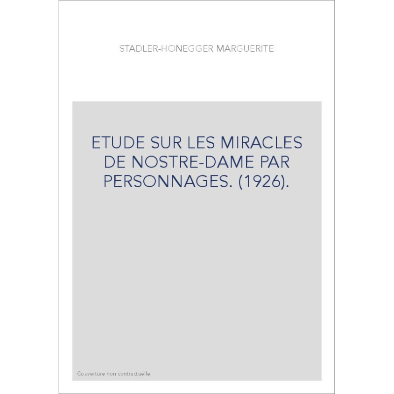 ETUDE SUR LES MIRACLES DE NOSTRE-DAME PAR PERSONNAGES. (1926).