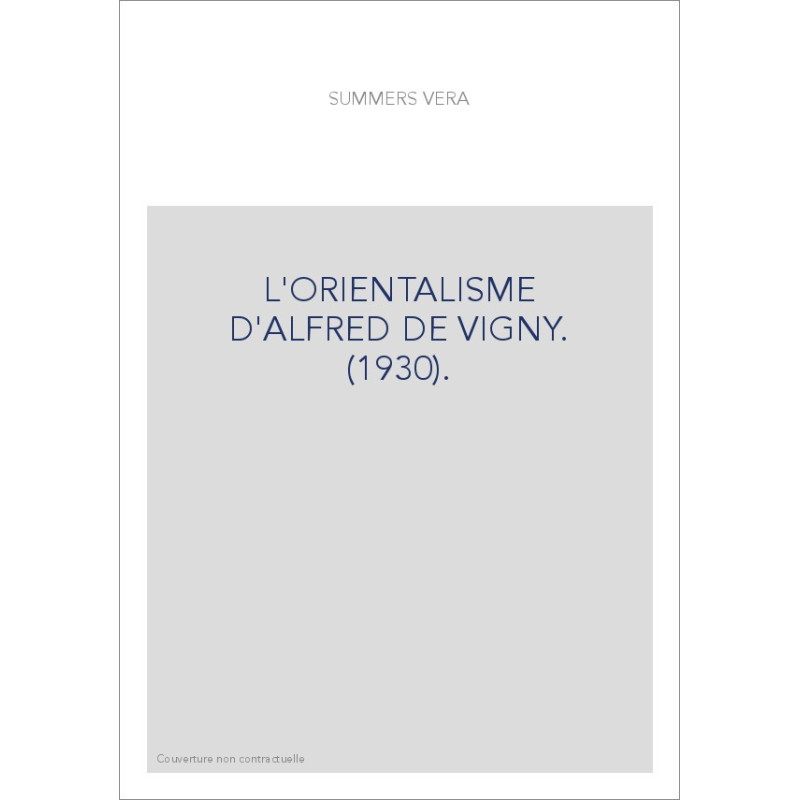 L'ORIENTALISME D'ALFRED DE VIGNY. (1930).
