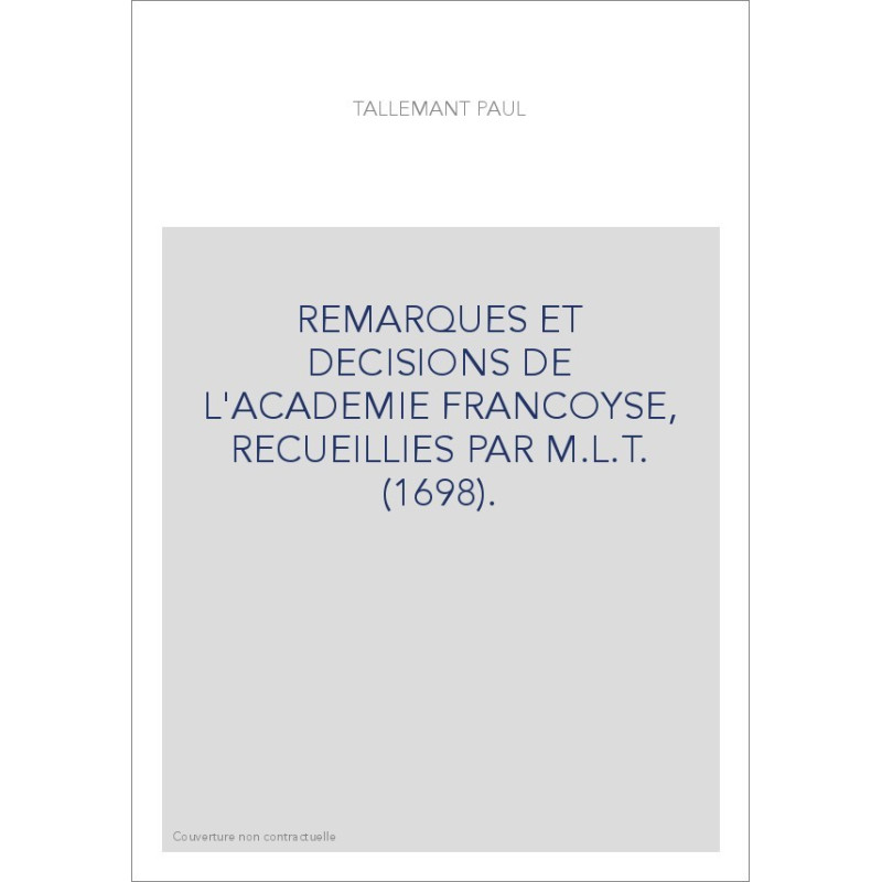 REMARQUES ET DECISIONS DE L'ACADEMIE FRANCOYSE, RECUEILLIES PAR M.L.T. (1698).
