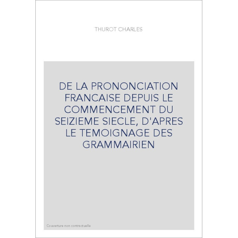 DE LA PRONONCIATION FRANCAISE DEPUIS LE COMMENCEMENT DU SEIZIEME SIECLE, D'APRES LE TEMOIGNAGE DES GRAMMAIRIEN