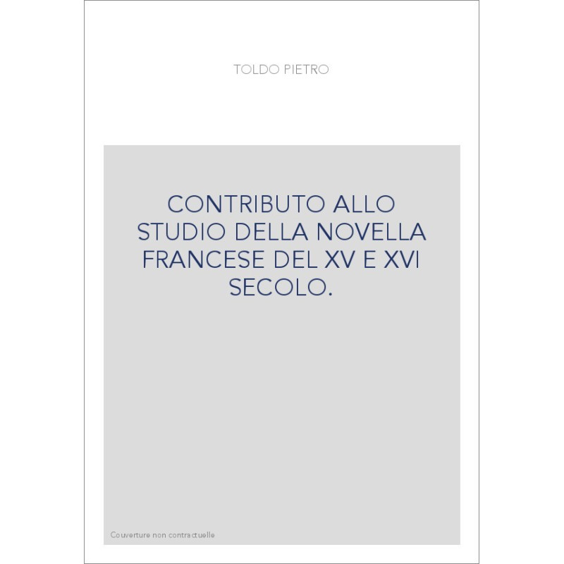 CONTRIBUTO ALLO STUDIO DELLA NOVELLA FRANCESE DEL XV E XVI SECOLO.