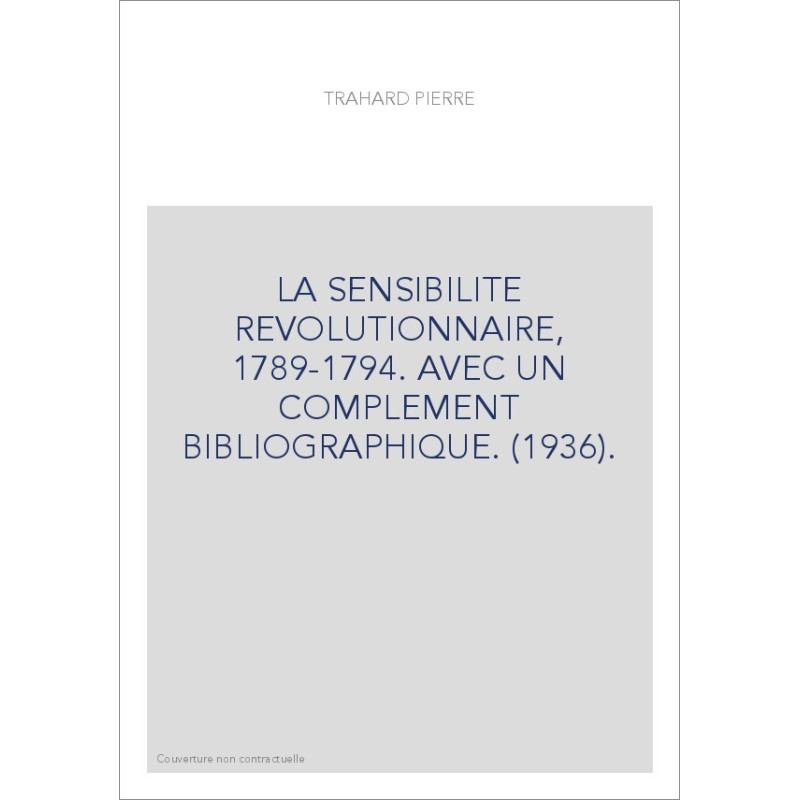 LA SENSIBILITE REVOLUTIONNAIRE, 1789-1794. AVEC UN COMPLEMENT BIBLIOGRAPHIQUE. (1936).