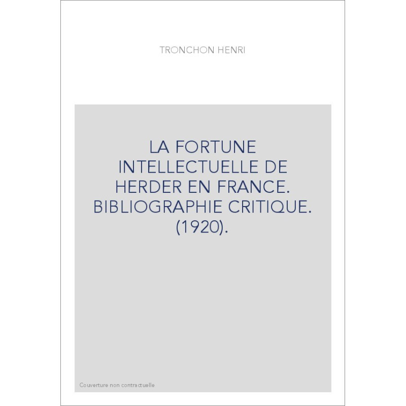 LA FORTUNE INTELLECTUELLE DE HERDER EN FRANCE. BIBLIOGRAPHIE CRITIQUE. (1920).