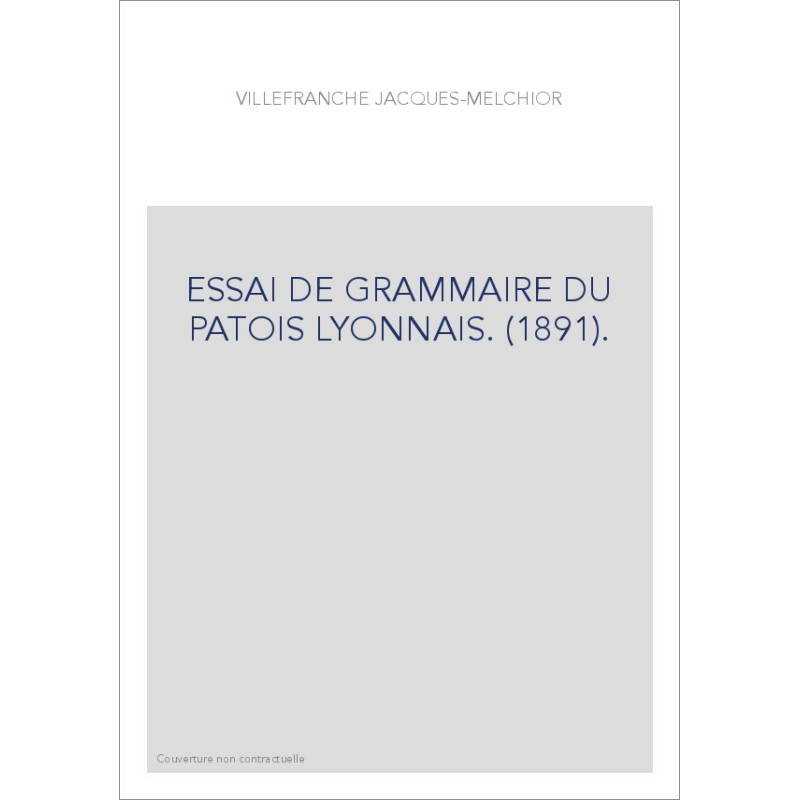 ESSAI DE GRAMMAIRE DU PATOIS LYONNAIS. (1891).