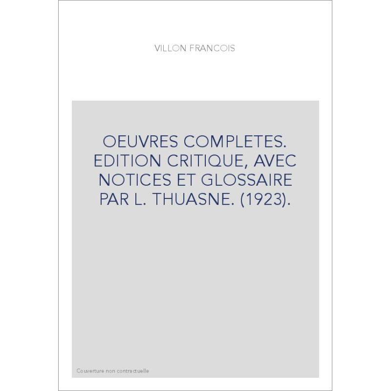 OEUVRES COMPLETES. EDITION CRITIQUE, AVEC NOTICES ET GLOSSAIRE PAR L. THUASNE. (1923).