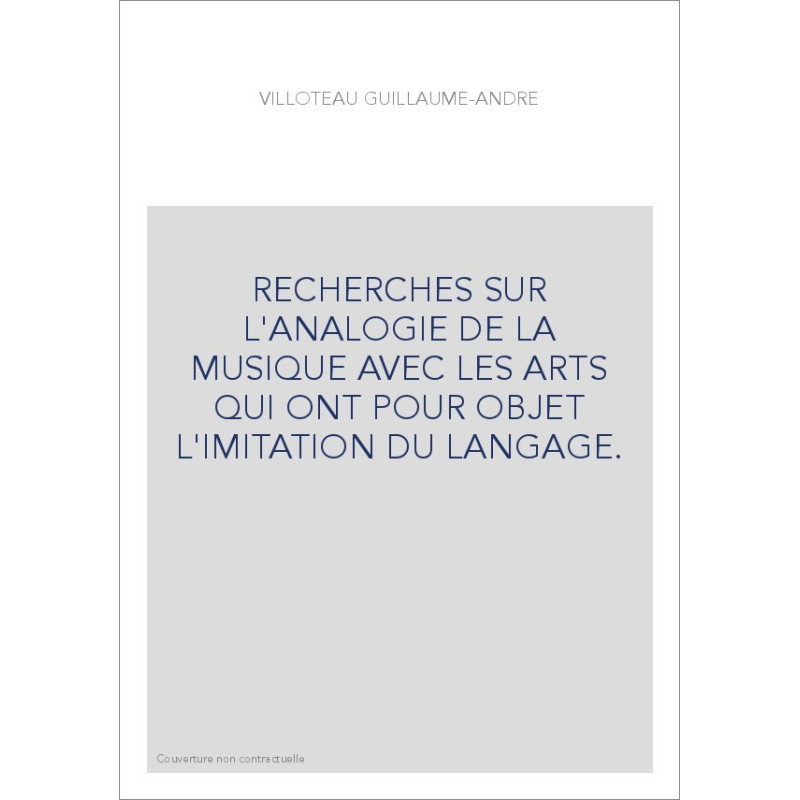 RECHERCHES SUR L'ANALOGIE DE LA MUSIQUE AVEC LES ARTS QUI ONT POUR OBJET L'IMITATION DU LANGAGE.