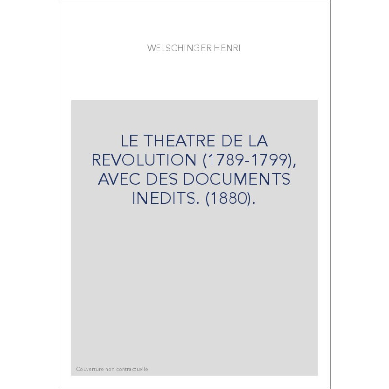 LE THEATRE DE LA REVOLUTION (1789-1799), AVEC DES DOCUMENTS INEDITS. (1880).