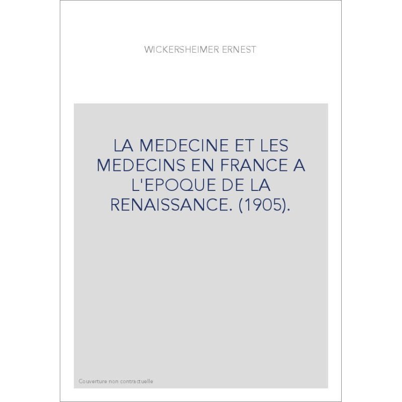 LA MEDECINE ET LES MEDECINS EN FRANCE A L'EPOQUE DE LA RENAISSANCE. (1905).
