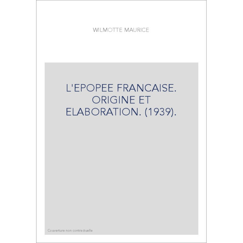 L'EPOPEE FRANCAISE. ORIGINE ET ELABORATION. (1939).