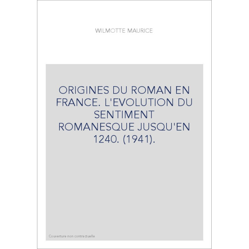 ORIGINES DU ROMAN EN FRANCE. L'EVOLUTION DU SENTIMENT ROMANESQUE JUSQU'EN 1240. (1941).