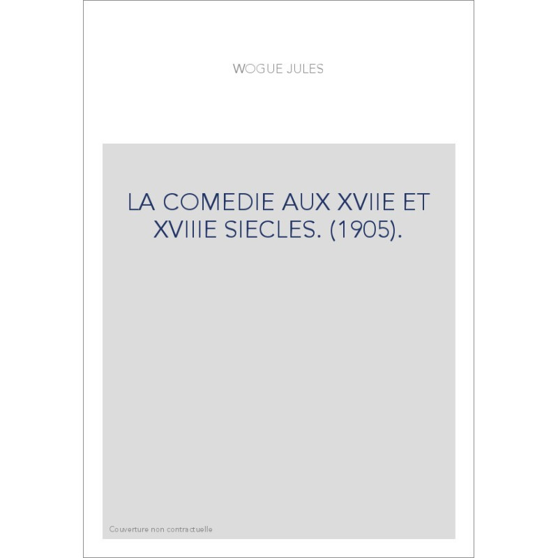 LA COMEDIE AUX XVIIE ET XVIIIE SIECLES. (1905).