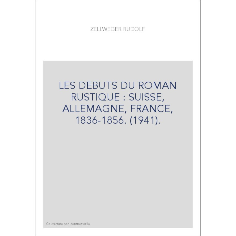 LES DEBUTS DU ROMAN RUSTIQUE : SUISSE, ALLEMAGNE, FRANCE, 1836-1856. (1941).
