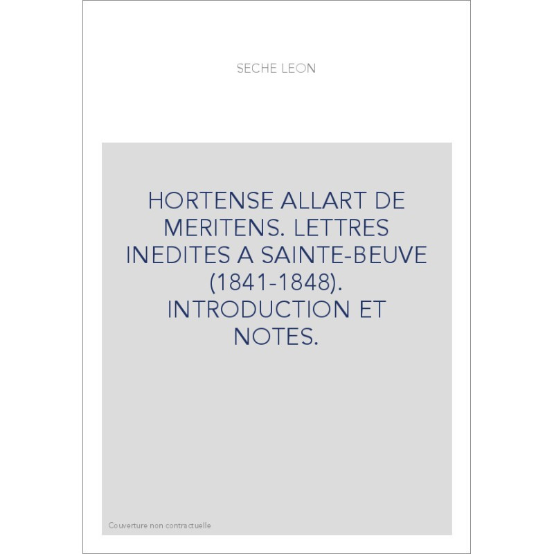 HORTENSE ALLART DE MERITENS. LETTRES INEDITES A SAINTE-BEUVE (1841-1848). INTRODUCTION ET NOTES.