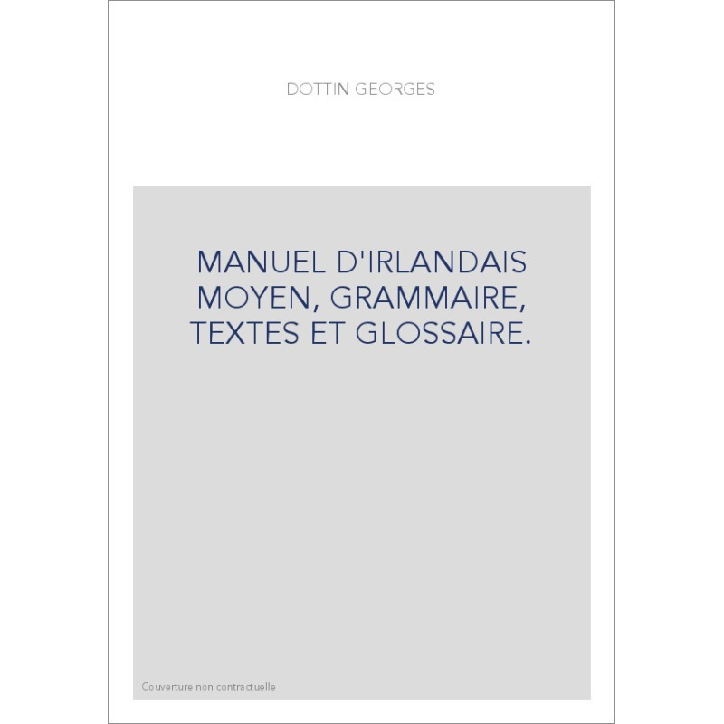 MANUEL D'IRLANDAIS MOYEN, GRAMMAIRE, TEXTES ET GLOSSAIRE.