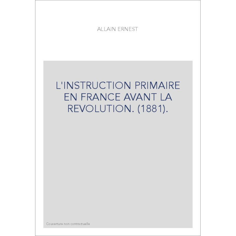 L'INSTRUCTION PRIMAIRE EN FRANCE AVANT LA REVOLUTION. (1881).