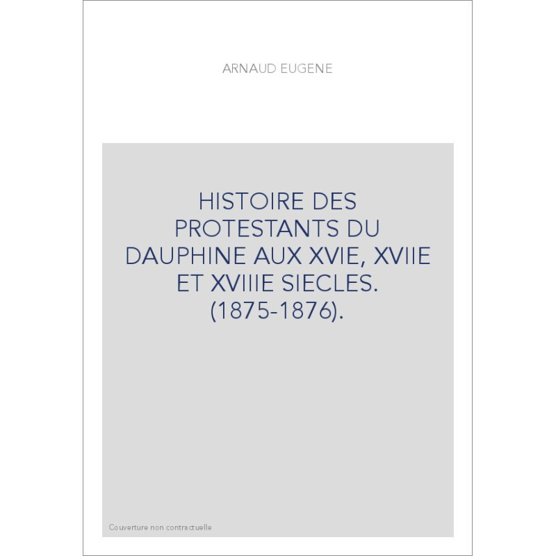 HISTOIRE DES PROTESTANTS DU DAUPHINE AUX XVIE, XVIIE ET XVIIIE SIECLES. (1875-1876).
