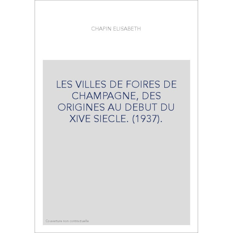 LES VILLES DE FOIRES DE CHAMPAGNE, DES ORIGINES AU DEBUT DU XIVE SIECLE. (1937).