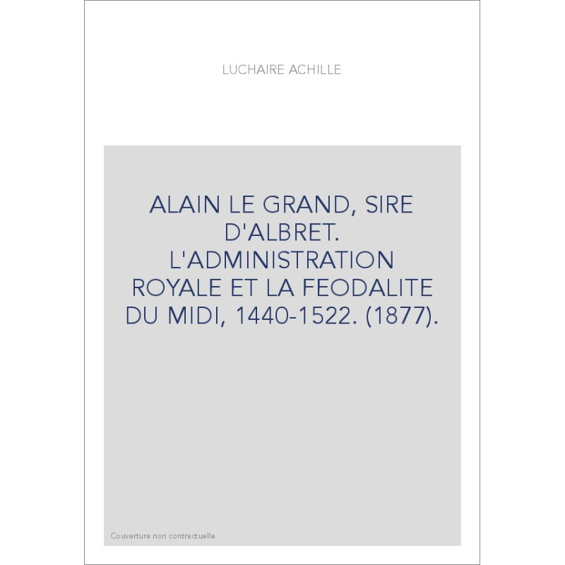 ALAIN LE GRAND, SIRE D'ALBRET. L'ADMINISTRATION ROYALE ET LA FEODALITE DU MIDI, 1440-1522. (1877).