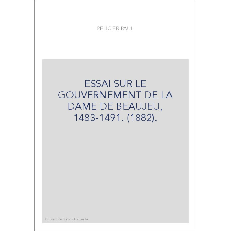 ESSAI SUR LE GOUVERNEMENT DE LA DAME DE BEAUJEU, 1483-1491. (1882).