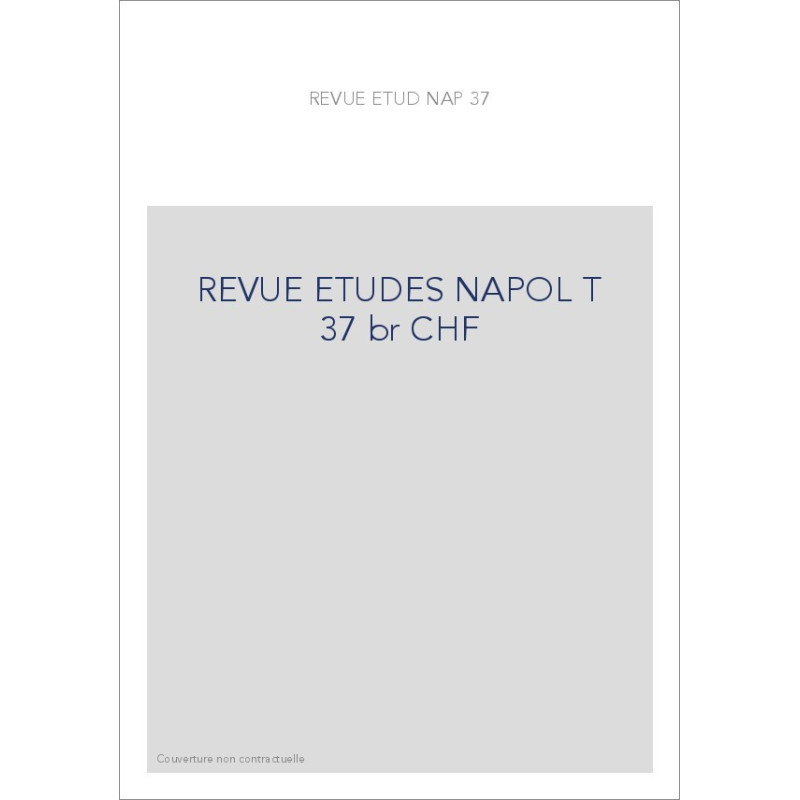 REVUE DES ETUDES NAPOLEONIENNES T 37