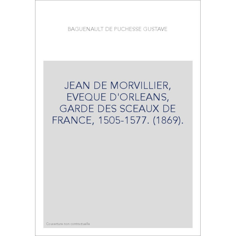 JEAN DE MORVILLIER, EVEQUE D'ORLEANS, GARDE DES SCEAUX DE FRANCE, 1505-1577. (1869).