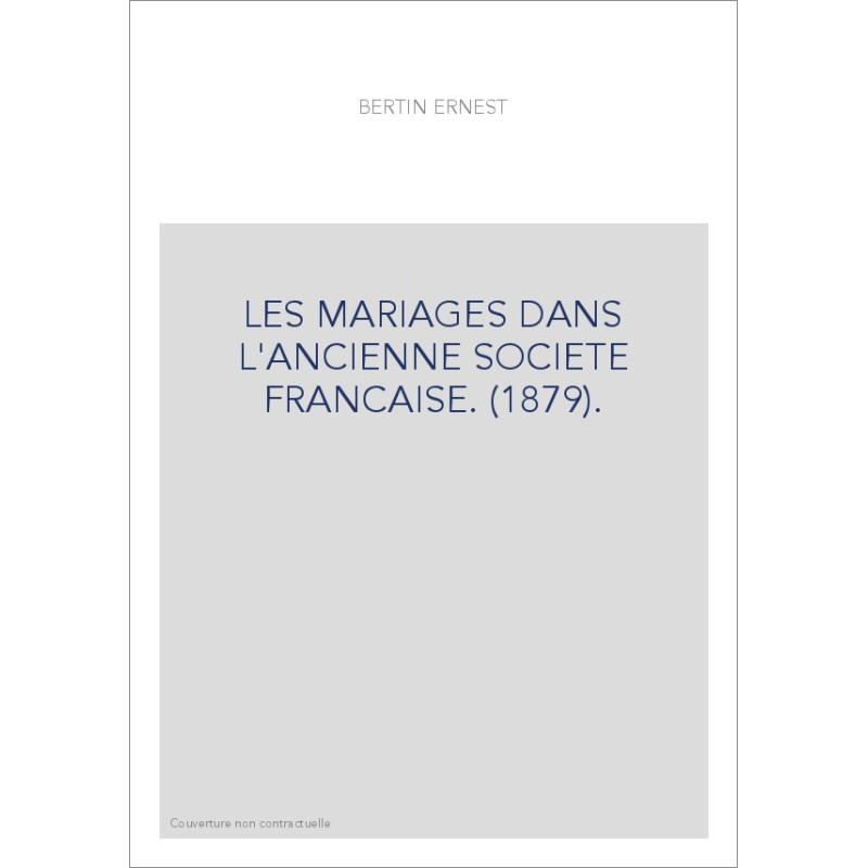 LES MARIAGES DANS L'ANCIENNE SOCIETE FRANCAISE. (1879).