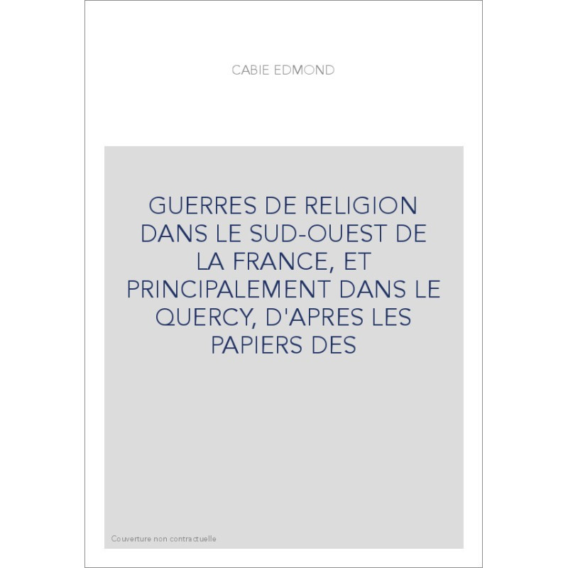 GUERRES DE RELIGION DANS LE SUD-OUEST DE LA FRANCE, ET PRINCIPALEMENT DANS LE QUERCY, D'APRES LES PAPIERS DES