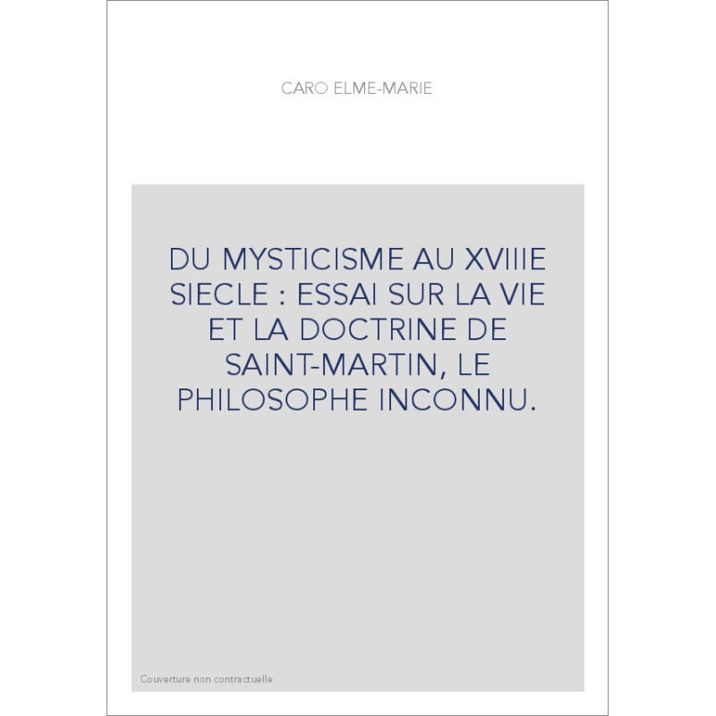 DU MYSTICISME AU XVIIIE SIECLE : ESSAI SUR LA VIE ET LA DOCTRINE DE SAINT-MARTIN, LE PHILOSOPHE INCONNU.