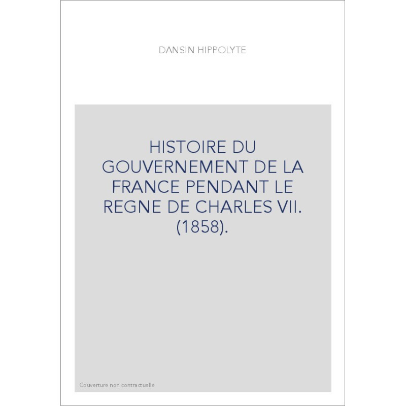 HISTOIRE DU GOUVERNEMENT DE LA FRANCE PENDANT LE REGNE DE CHARLES VII. (1858).