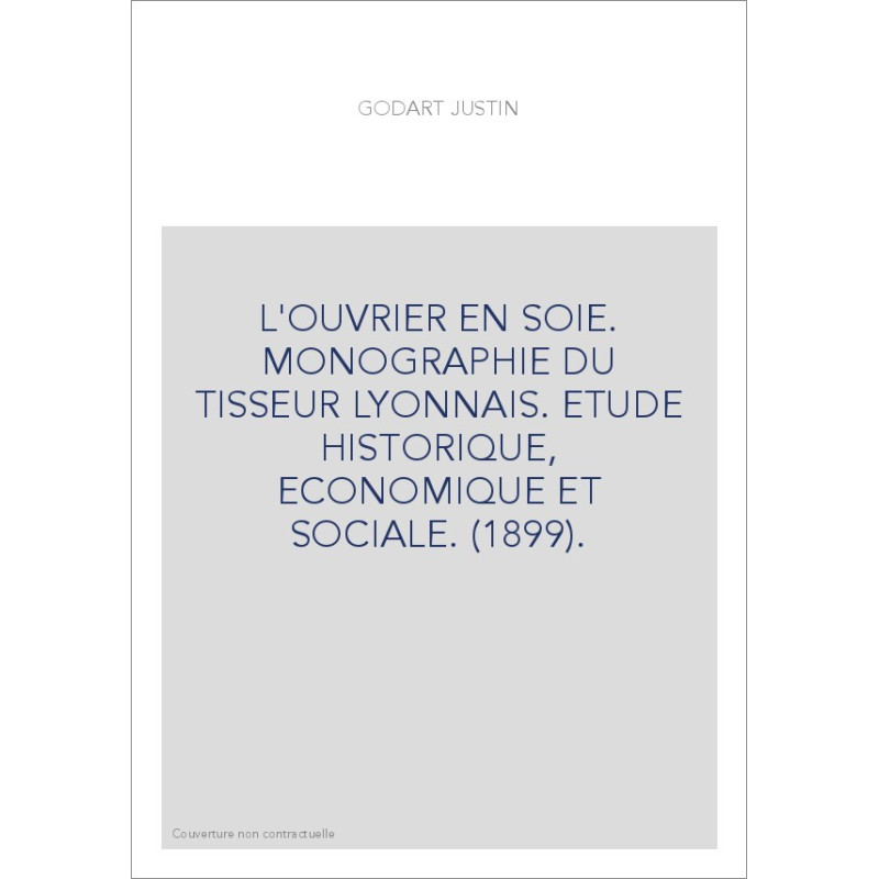 L'OUVRIER EN SOIE. MONOGRAPHIE DU TISSEUR LYONNAIS. ETUDE HISTORIQUE, ECONOMIQUE ET SOCIALE. (1899).