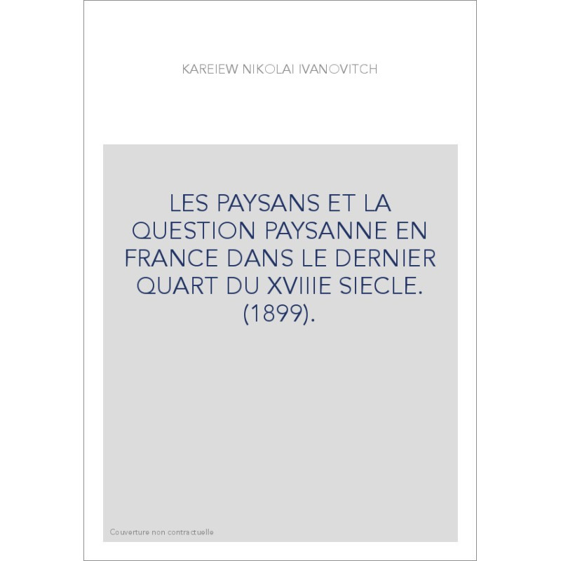 LES PAYSANS ET LA QUESTION PAYSANNE EN FRANCE DANS LE DERNIER QUART DU XVIIIE SIECLE. (1899).