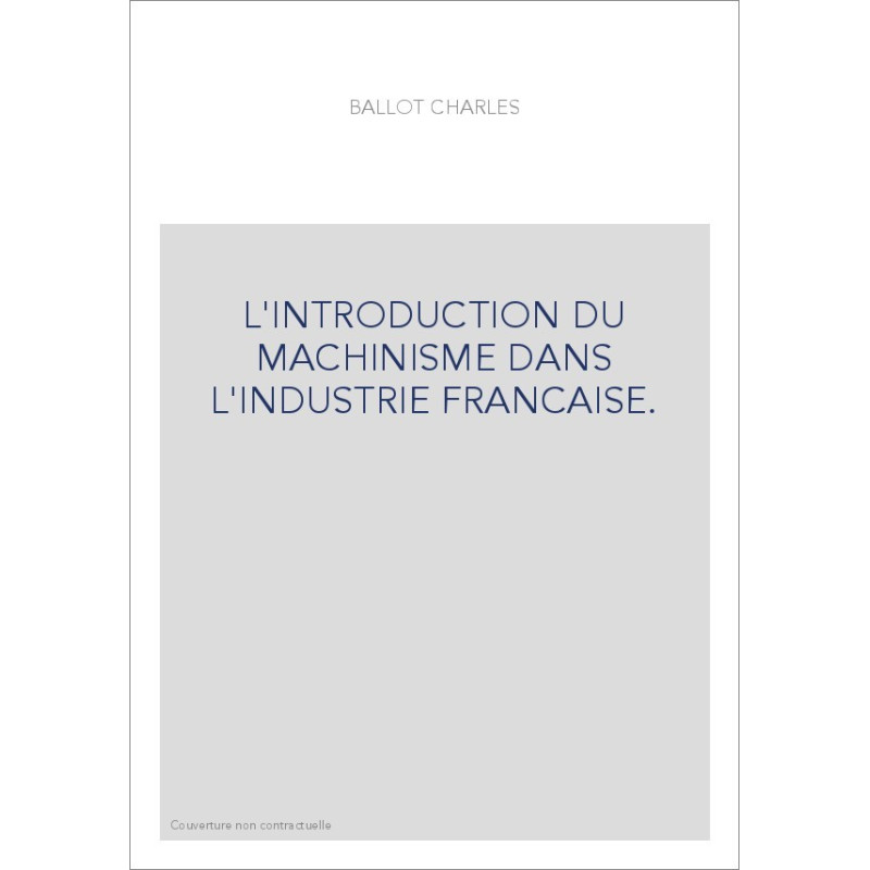 L'INTRODUCTION DU MACHINISME DANS L'INDUSTRIE FRANCAISE.
